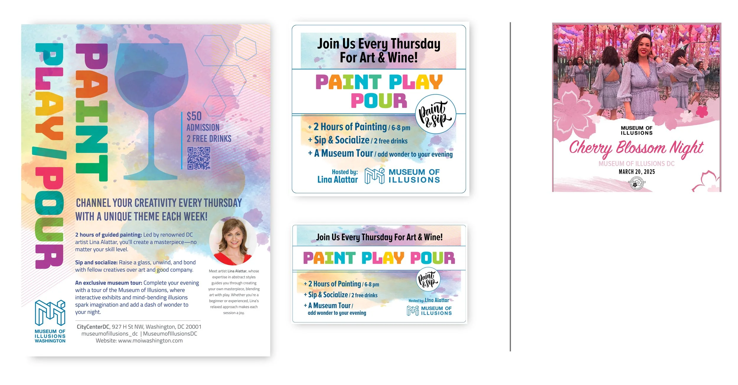 SIP & PAINT CAMPAIGN / Poster design highlighting Sip & Paint workshops at the Museum, paired with digital ads to increase awareness and promote the event.